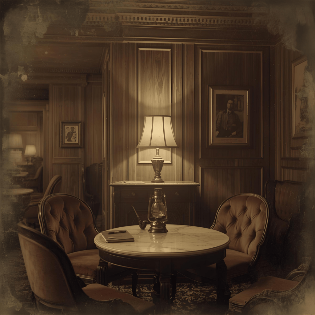 Robinson et Miss Dupuis s’étaient retirés dans le petit salon privé de leur hôtel, juste après le déjeuner de ce lundi matin gris. La pièce, enveloppée d’une chaleur tranquille, semblait étrangère aux clameurs du dehors. Les boiseries de chêne, finement sculptées, luisaient faiblement sous la clarté dorée d’une lampe à kérosène posée sur un guéridon de marbre.