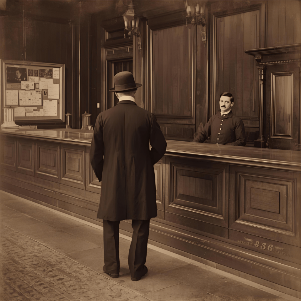 Il ôta son chapeau, épousseta machinalement son manteau et s’approcha du comptoir d’accueil, enchâssé dans une alcôve de pierre. Un jeune clerc, raide dans sa tenue, leva à peine les yeux.